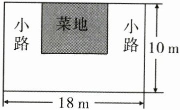 17. (6分) 如图,有一块长为 $ 18 $ m,宽为 $ 10 $ m 的长方形土地,现将三面留出宽都是 $ x $ m($ 0 < x < 8 $)的小路,余下的部分为菜地.用含 $ x $ 的式子表示菜地的长、宽及面积.