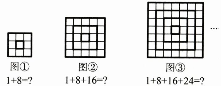 A 【解析】图①1+8=9=3²,图②1+8+16=25=5²,图③1+8+16+24=49=7²,…它们都是连续奇数的平方,奇数一般用2n-1或2n+1表示,图①是3²=(2×1+1)²…,所以结果为(2n+1)².
