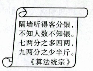 15.(遵义中考)明代数学家程大位的《算法统宗》中有这样一个问题(如图),其大意为:有一群人分银子,如果每人分七两,则剩余四两;如果每人分九两,则还差八两,请问:所分的银子共有