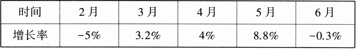 22. (10分)如下表,是某市上半年的旅游盈利相比上月的增长率.