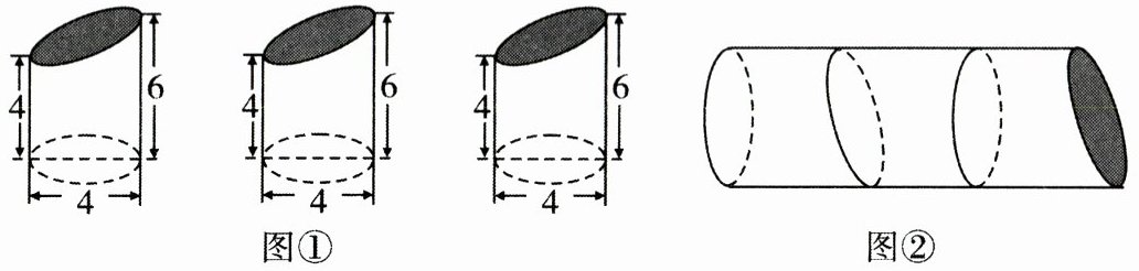 18. (6分)如图①是三个直立于水平面上的形状完全相同的几何体(下底面为圆面,单位:cm),将它们拼成如图②的新几何体,求该新几何体的体积.(结果保留π)