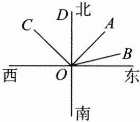 14. 如图,射线 $ OA $ 表示的方向是北偏东 $ 44^{\circ} $,射线 $ OB $ 表示的方向是北偏东 $ 76^{\circ} $,已知 $ \angle BOC = 122^{\circ} $。