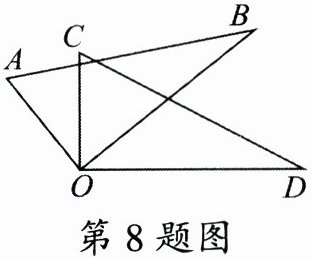 8. 如图,把两块完全相同的直角三角板的直角顶点重合,如果$ ∠AOD = 128° $,那么$ ∠BOC $等于(