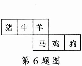 6. (恩施中考)中国讲究五谷丰登、六畜兴旺.如图是一个正方体展开图,图中的六个正方形内分别标有六畜:“猪”“牛”“羊”“马”“鸡”“狗”.将其围成一个正方体后,则与“牛”相对的是(