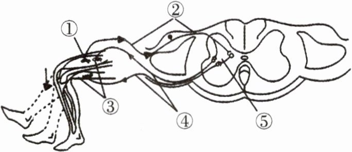5. [上海中考] 如图为膝跳反射过程示意图,下列叙述错误的是(