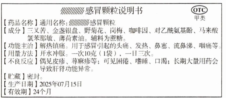11. [滨州中考]晓丽放学回家,看到妈妈有点感冒,并有头痛、发热、流涕等症状。她从家庭小药箱中找到了一盒药,如图是药物说明书。下列说法正确的是(
