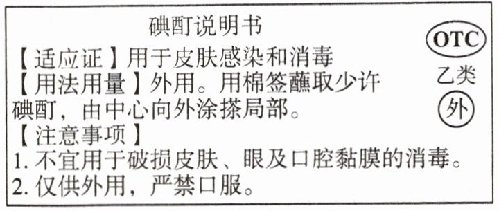 10. [广西中考]如图是家庭常用药碘酊的说明书的部分内容。下列用药方式不安全的是(