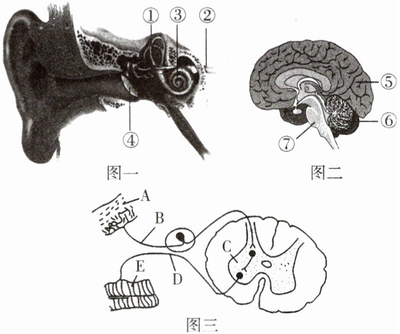 (1)条件反射 反射弧 ③ A (2)⑦ 脑干 (3)小脑 (4)激素 (5)C 神经中枢