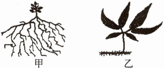 3. 下图是甲、乙两株植物,你认为它们适于分布的地区分别是(