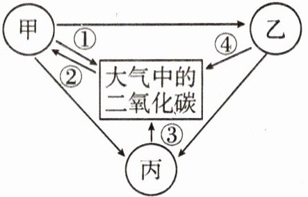 4. 下图表示生态系统中三种生物成分之间的物质传递关系。其中,甲、乙、丙分别代表(