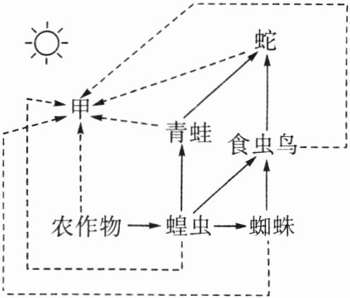(1)3 农作物→蝗虫→蜘蛛→食虫鸟→蛇