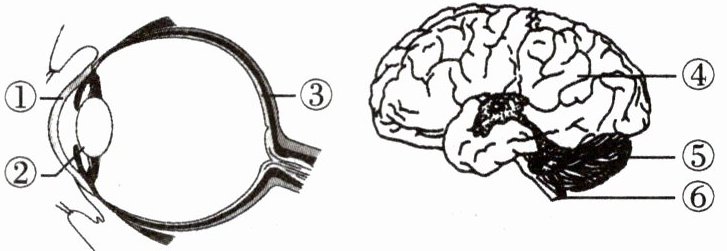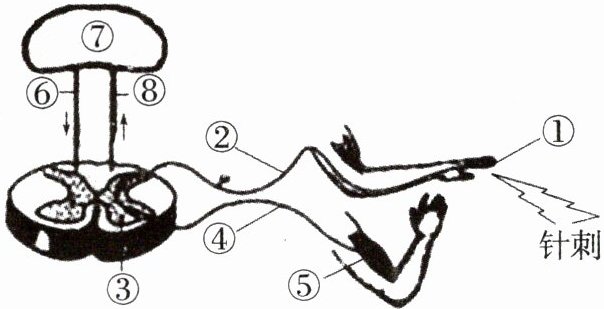(1)针刺能感觉到疼痛,但无法完成缩手反射,受损部位可能是______(填序号)。