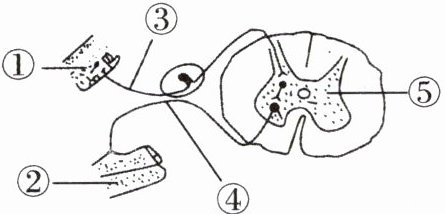 7. 生命活动的完成需依赖一定的结构基础,如图表示针刺手指后完成缩手反射并形成痛觉的过程示意图,其中①~⑤表示反射弧各部分结构。请分析并回答:
