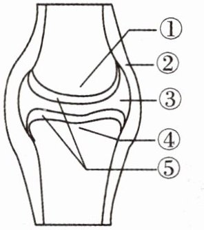 )①关节头 ②关节窝 ③骨骼肌 ④关节软骨 ⑤关节囊 ⑥关节腔