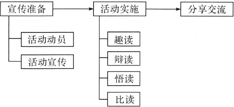 8. 【学科素养·思维能力】班级为“阅读名著,认识英雄”活动绘制了活动流程框架图,请你补全下面的介绍语。注意表达简明、连贯、通顺。