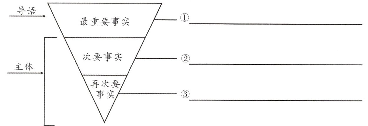 4. (考点:概括新闻内容)文本一体现了消息“倒金字塔结构”的特点。请根据材料概括各部分内容,完成示意图。