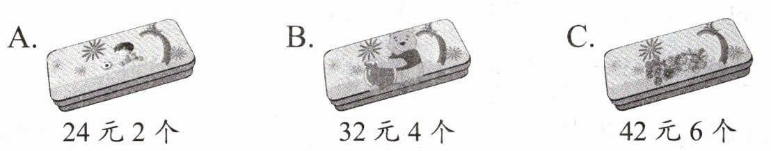 3. 周老师买了 6 个相同的文具盒,付了 50 元,找回 2 元。他买的文具盒是(