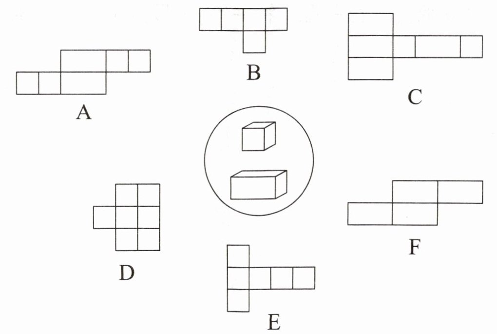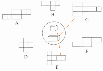 4. 下面哪些展开图可以折成圆圈中的立体图形(有盖)?连一连。