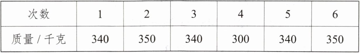 |质量/千克|340|350|340|300|340|350|