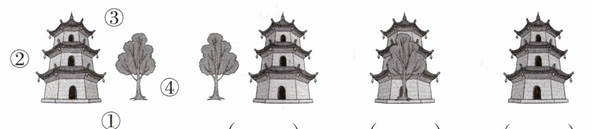 (2)刘萌同学看到的图形是塔在左边,树在右边,那么她在(