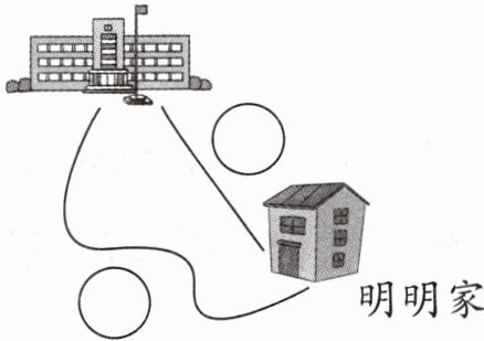 4. 明明从家步行去学校,走哪条路最近?请在 $◯$ 里画“√”,并且说明理由。