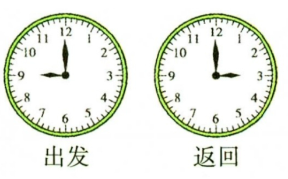 1. 小佳是在上午时针和分针成直角时出发去图书馆看书的,在下午时针和分针成直角时返回的。你知道小佳是什么时候出发、什么时候返回的吗?画一画。(8 分)