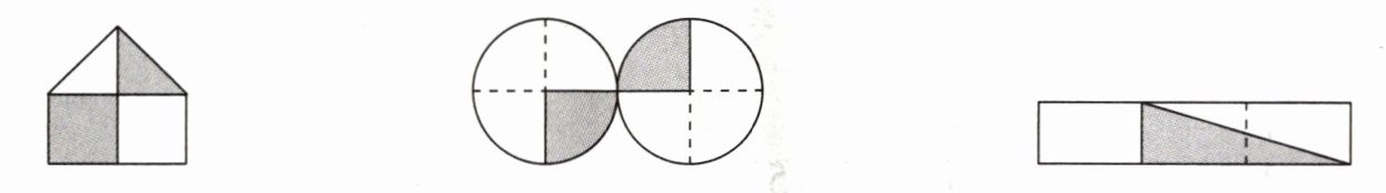 3. 下面各图中的涂色部分是整个图形的几分之几?请你用分数表示出来。