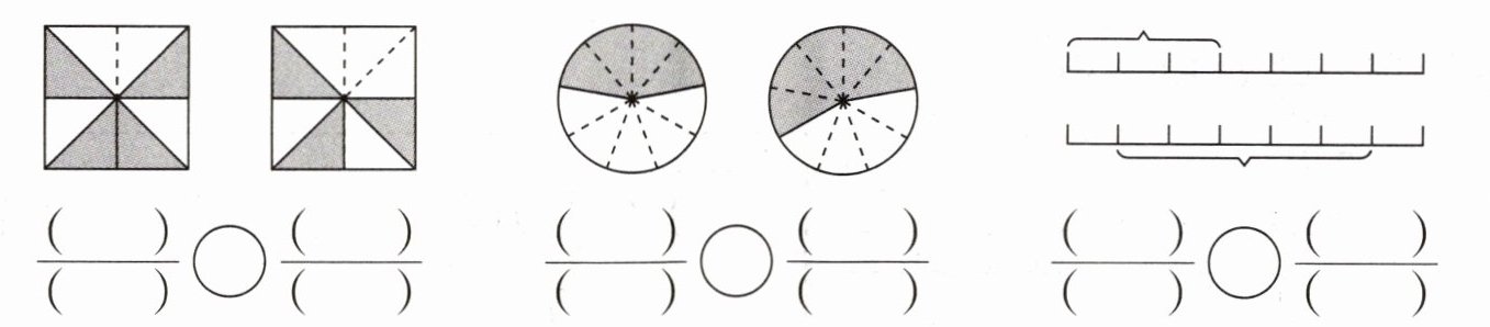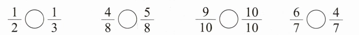 $\frac{4}{8}>\frac{3}{8}$ $\frac{4}{9}<\frac{5}{9}$ $\frac{3}{7}<\frac{5}{7}$