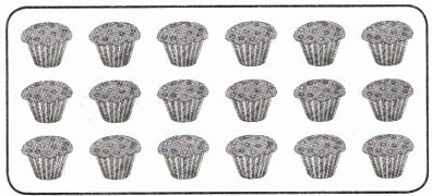 总数$\frac{1}{3}$: $18 × \frac{1}{3} = 6$,圈出6个蛋糕托。