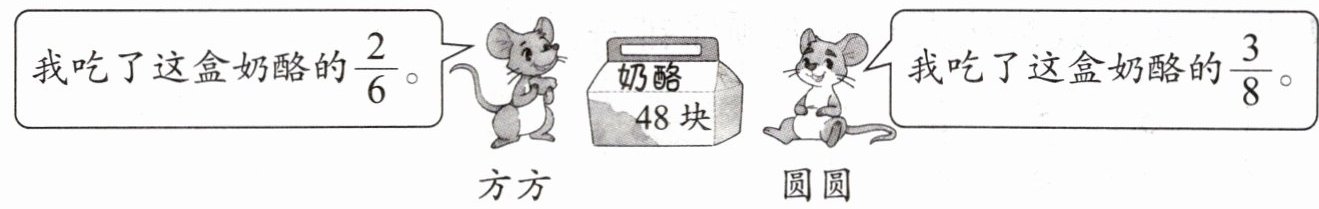 方方:48÷6×2=16(块) 圆圆:48÷8×3=18(块) 16<18 圆圆吃得多。