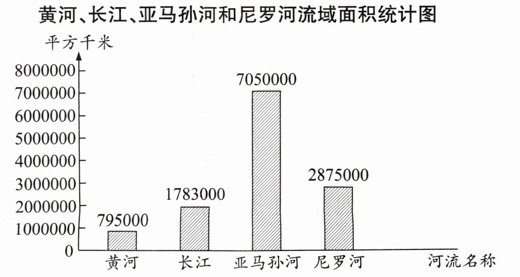 黄河、长江、亚马孙河和尼罗河流域面积统计图