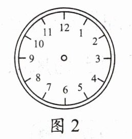 请你在图2的钟面上画时针和分针,使得到的角度等于图1中时针和分针组成的角的度数。(图2与图1的时刻不能相同)