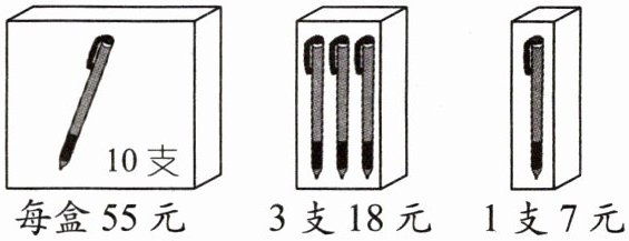 3盒10支 2盒3支 1盒1支 3×55+2×18+1×7=208(元) 答:买3盒10支、2盒3支、1盒1支最省钱,要花208元。