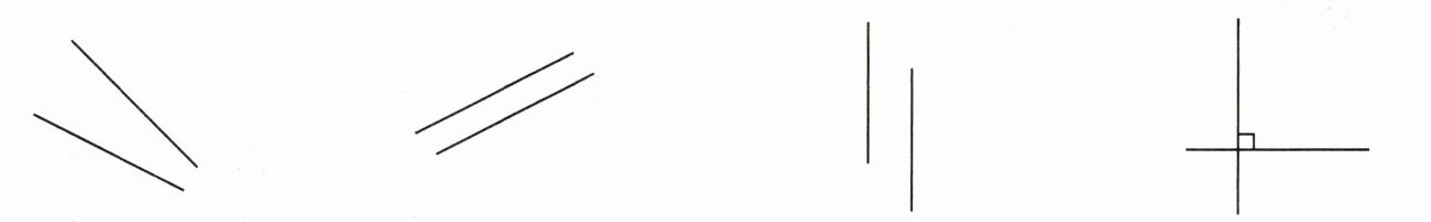 2. 下面各组直线中,互相平行的请画“√”,互相垂直的请画“○”。