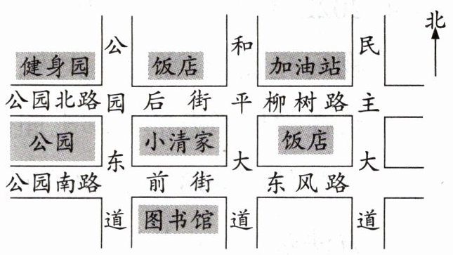 (1) 公园北路和公园南路互相平行;后街和平柳路互相平行。
