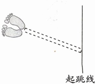 2. 丁军同学计划用下图中的方法测量本班同学的立定跳远成绩。王涛同学认为这种测量方法不准确。你同意他的观点吗?说说你的理由。