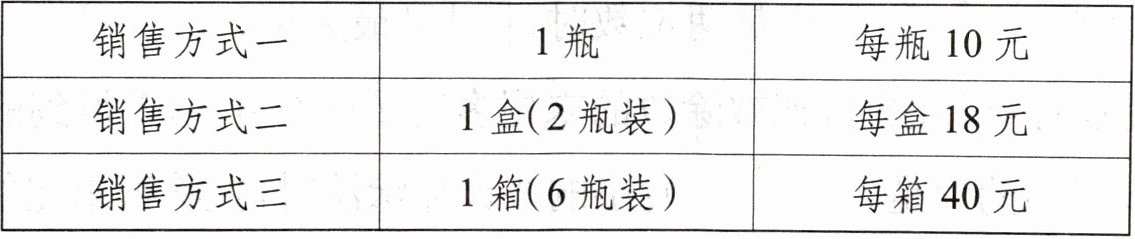 |销售方式三|1 箱(6 瓶装)|每箱 40 元|