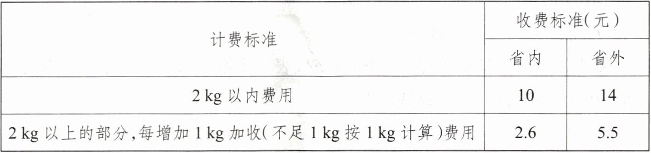2. 某快递公司的收费标准如下表。