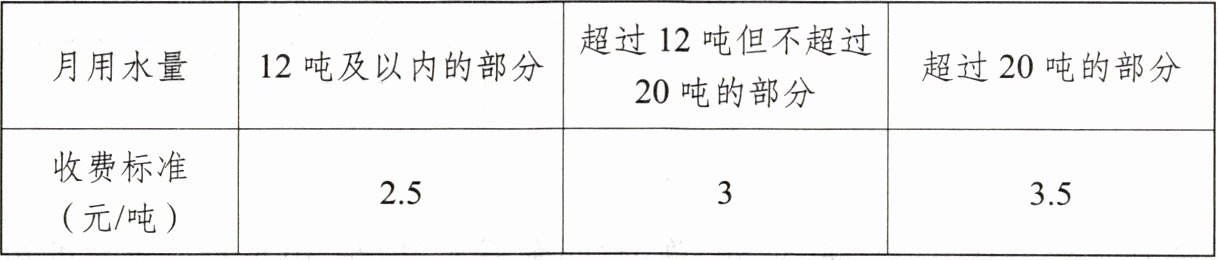 4.某自来水公司为倡导居民节约用水,采取按月分段计费的方法收取水费,收费标准如下表。