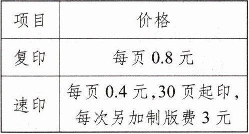 3.复印:25×0.8=20(元) 速印:30×0.4+3=15(元) 15<20 选择速印