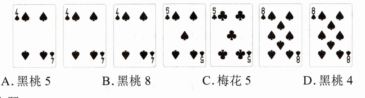(2)从下面的扑克牌中任意摸出一张,摸到( )的可能性最大。
