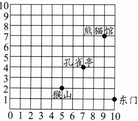2. 暑假,明明一家游览了公园,活动路线是(10,1)→(5,2)→(5,4)→(7,4)→(6,6)→(3,8)→(2,10),请你在图中画出他们的游览路线。(7 分)
