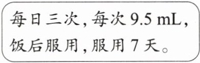 每日三次,每次 9.5 mL,饭后服用,服用 7 天。