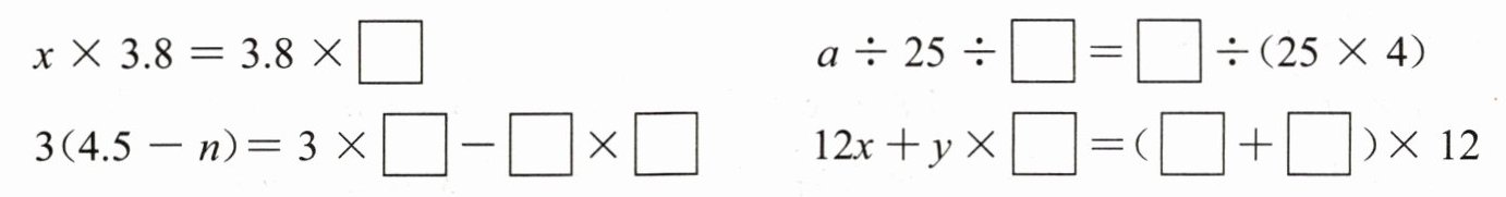 2. 根据运算律,在 □ 里填上合适的数或字母。