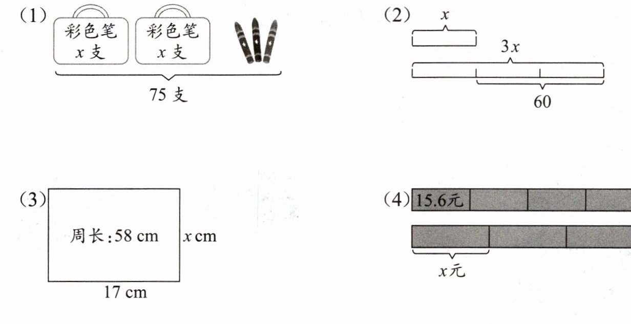 4. 先根据下面的线段图编一道应用题,再列方程并解方程。