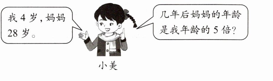 4.解:设x年后妈妈的年龄是小美年龄的5倍。5(4+x)=28+x x=2