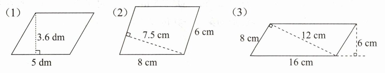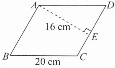 3. 如图,一个平行四边形的周长是 76 cm,BC 长为 20 cm,以 CD 为底时,它的高是 16 cm,求这个平行四边形的面积。