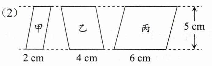 3. 甲、乙、丙三个平行四边形的面积相等吗?看图算一算,填一填。