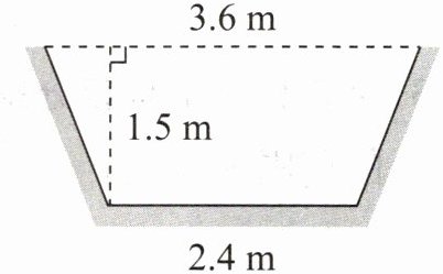 3. 一条水渠,横截面是梯形,如图。已知水渠口宽 3.6 m,水渠底宽 2.4 m,渠深 1.5 m,它的横截面的面积是多少平方米?