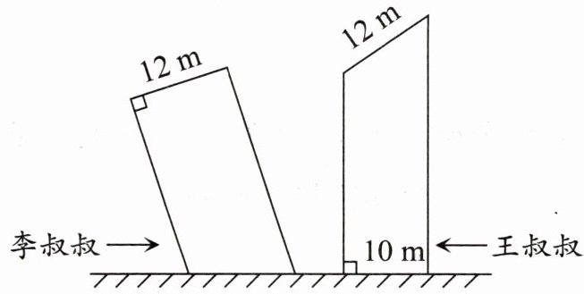 3.李叔叔:(60-12)×12÷2=288(m²) 王叔叔:(60-12)×10÷2=240(m²) 288>240 李叔叔围的苗圃面积大。